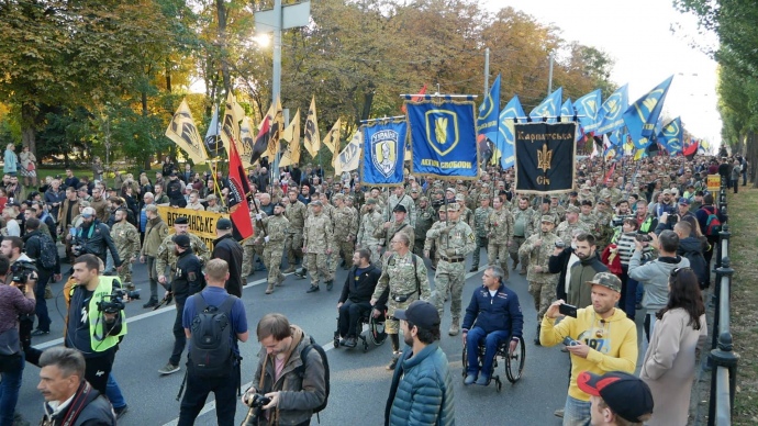 Марш националистов в центре Киева в воскресенье собрал около 10 тысяч участников.