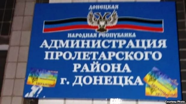 В Донецке на здании одной из администраций вывесили украинский флаг