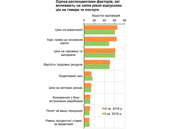 Бизнес не просто предсказывает подорожание доллара и евро, он уже прикидывает, как заложить его в цену своей продукции. Изменение курса стало второй причиной роста отпускных цен на товары и услуги, на первом — цены на энергоносители. «Влияние обоих факторов последнее время усилилось», — подчеркивается в исследовании Нацбанка.