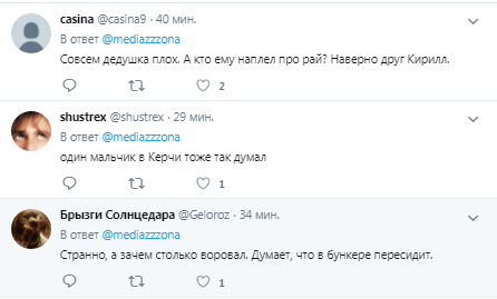 «Агрессор должен знать, что возмездие неизбежно. Мы, жертвы агрессии, мы как мученики попадем в рай. А они просто сдохнут. Потому что даже раскаяться не успеют», — сказал президент. После этих слов зал засмеялся.смехом.