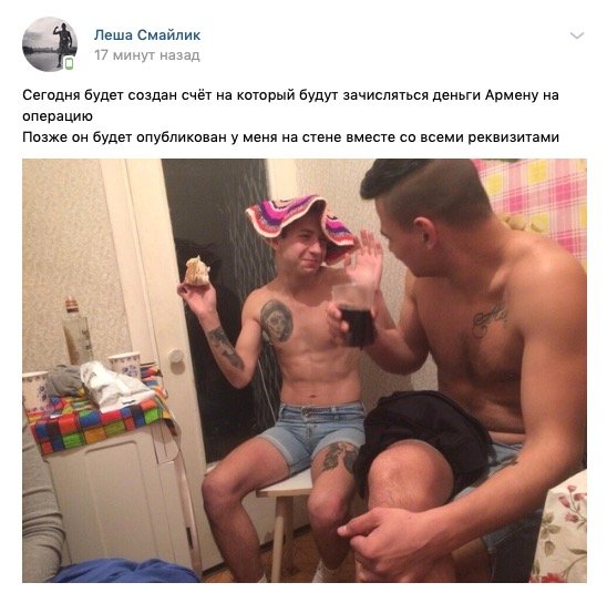 Друзья Армена анонсировали сбор средств на лечение парня.
