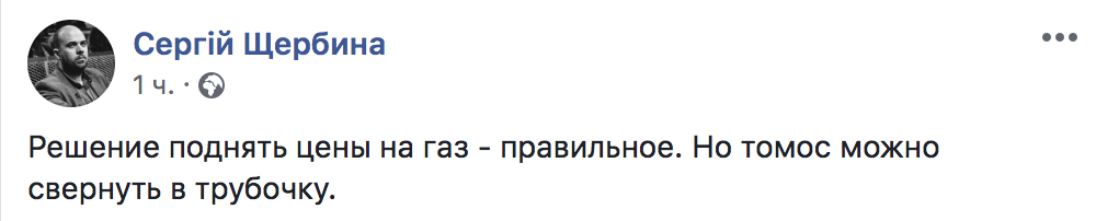 "Решение о повышении цены правильное. Но Томос теперь можно свернуть в трубочку", - пишет Щербина.