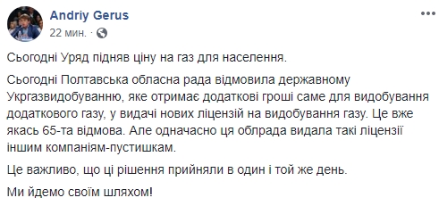 Глава Ассоциации потребителей энергетики и коммунальных услуг Андрей Герус пишет, что одновременно с ростом цен на газ власти Украины мешают добывать топливо в нашей стране: