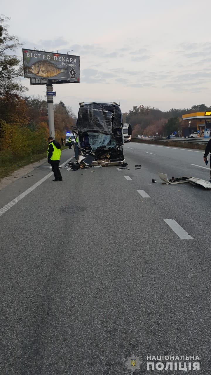 Правоохранители уточнили, что авария произошла в 05:55 на 28 километре автотрассы Киев-Чоп возле села Мила. Там столкнулись автобус "Неоплан" и грузовик.