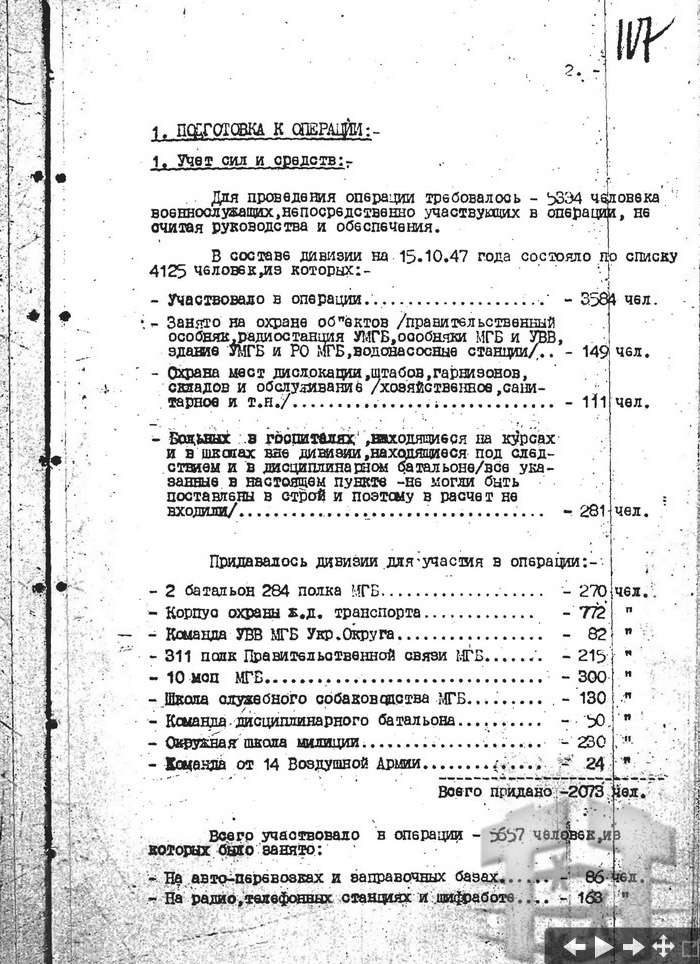 Выдержка из итогового отчёта про подготовку, проведение и итоги операции "Запад" на территории Львовской области. Здесь для укрепления "дружбы народов" потребовалось привлечение 5344 солдат: