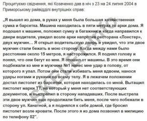 Позднее стало известно, что Козаченко несколько раз менял свои показания. Сначала он заявил милиции, что использовал собственный пистолет в рамках самообороны, достав его из барсетки после того как нападавшие свалили его на землю. Но когда он проспался и вспомнил, что незаконное владение пистолетом это тоже преступление, а тем более после того как выяснилось, что этот пистолет «горячий» и находится в розыске, Козаченко договорился с милицией и переписал протокол – и злосчастный ТТ уже стал оружием безумных нападавших. Более того, Козаченко публично озвучил свою вторую версию на специально собранной пресс-конференции, а также назвал это политической расправой над честным депутатом»!