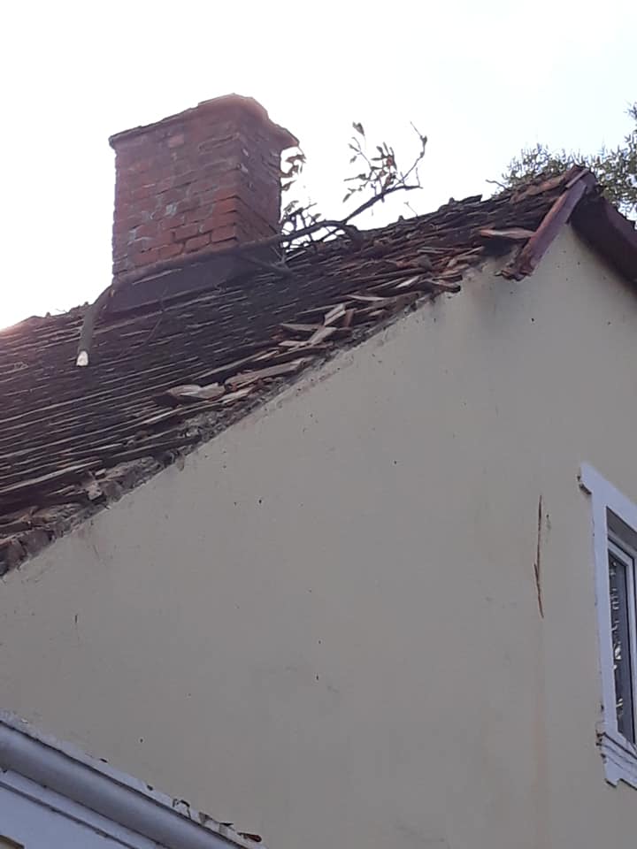 В результате непогоды днем зафиксировали поваленные деревья, поврежденные вследствие этого автомобиль, забор и крыша частного дома; окна квартиры на третьем этаже дома.