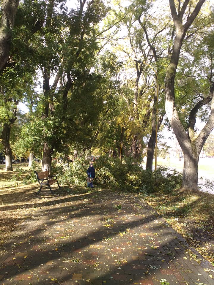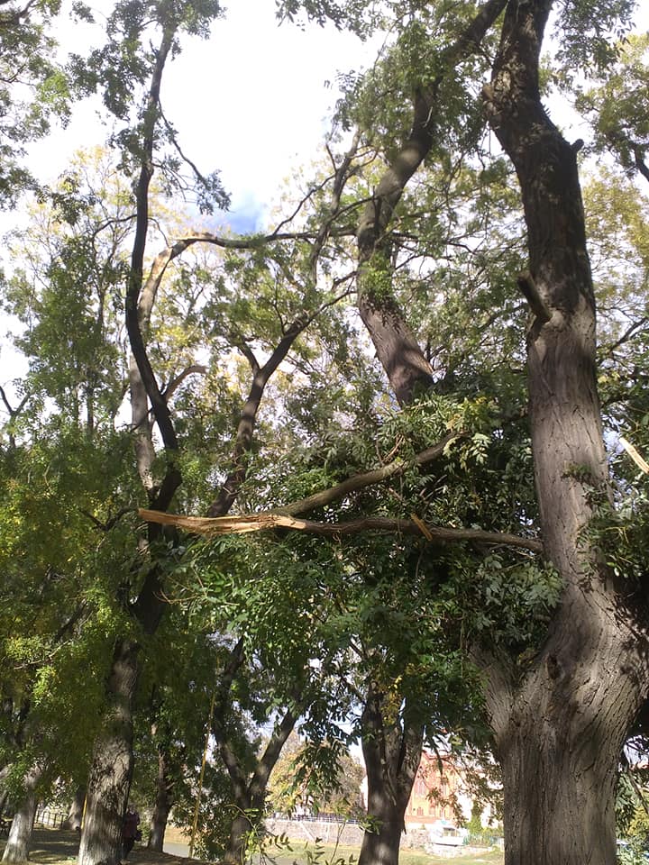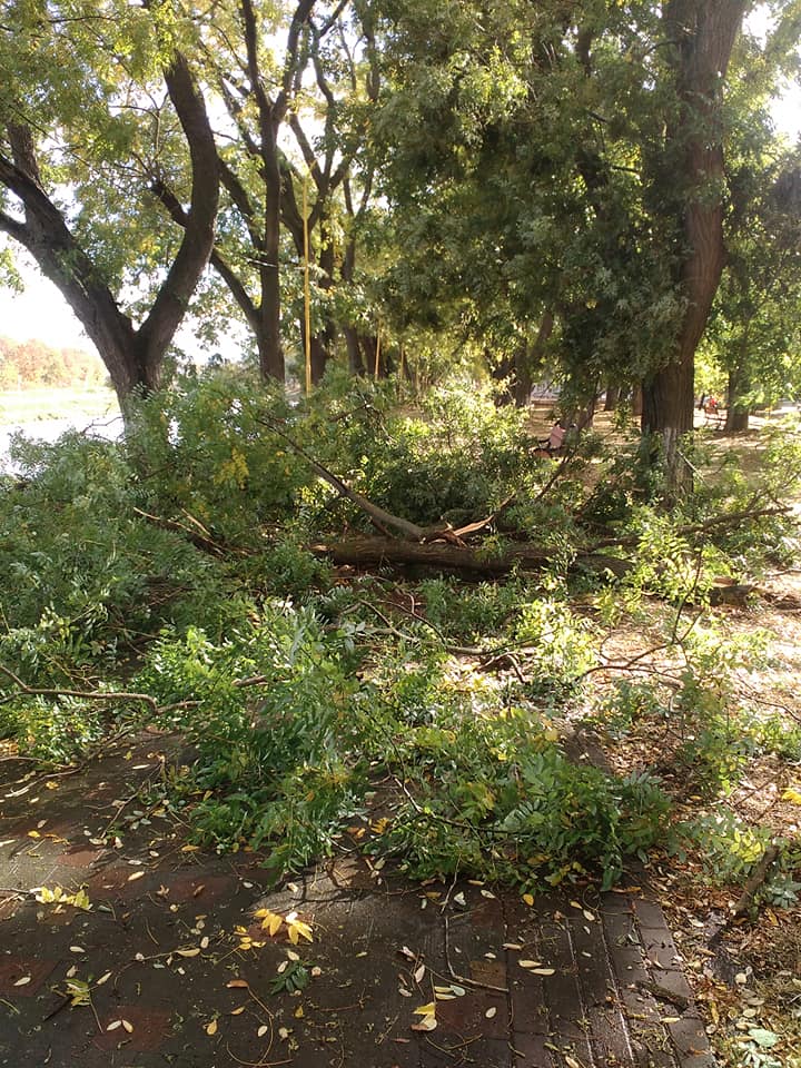 На Православной набережной ветер сломал две софоры, ветки попадали на пешеходную зону, однако никто не пострадал.