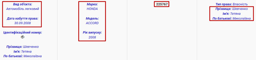 Також Тетяна Миколаївна є власницею єдиного автомобіля в родині – HONDA ACCORD 2008 року випуску. Обійшлося це авто судді у 225 тис. грн. Враховуючи, що на той час ця сума дорівнювала 28 тис. доларів – теж виникають сумніви у спроможності Тетяни Шевченко придбати таке авто.