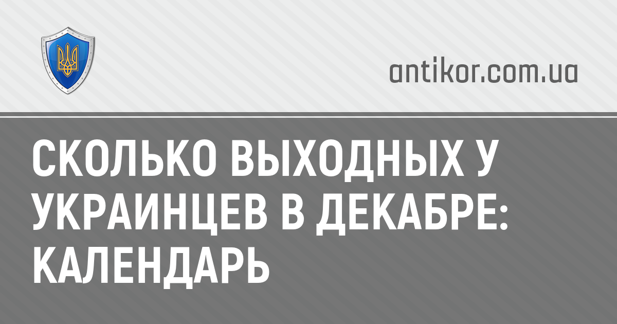 В декабре 2018 года украинцы будут отдыхать 11 дней. Согласно статье Кодекса законов о труде Украины, 25 декабря (Рождество Христово) и 1 января (Новый год) установлены нерабочими.