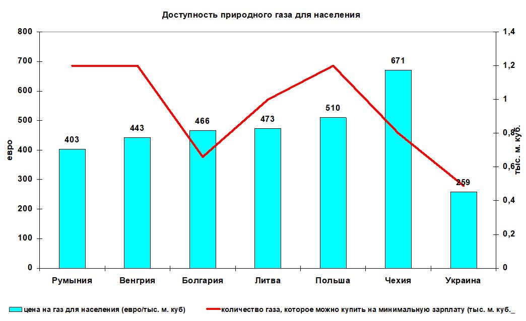 И если цена на газ для населения у нас еще действительно не вышла на европейский уровень, то относительно уровня нашего благосостояния она уже давно превысила оный: даже с учетом роста минималки в 2019 году украинец сможет купить на нее 0,49 тыс. м куб. газа, а после очередного планового повышения – и того меньше. В то время как болгарин способен купить 0,66 тыс. м куб., поляк, румын и венгр – 1,2 тыс. м куб., чех – 0,8 тыс. м куб.