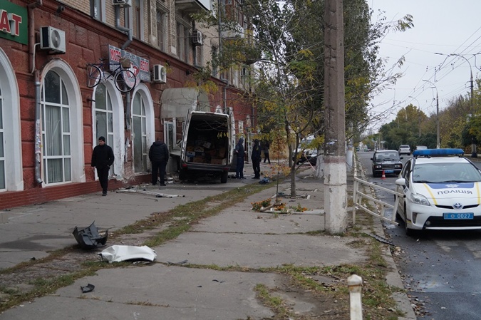 Утром 1 октября в Херсоне микроавтобус протаранил магазин. ДТП произошло на улице Перекопской.