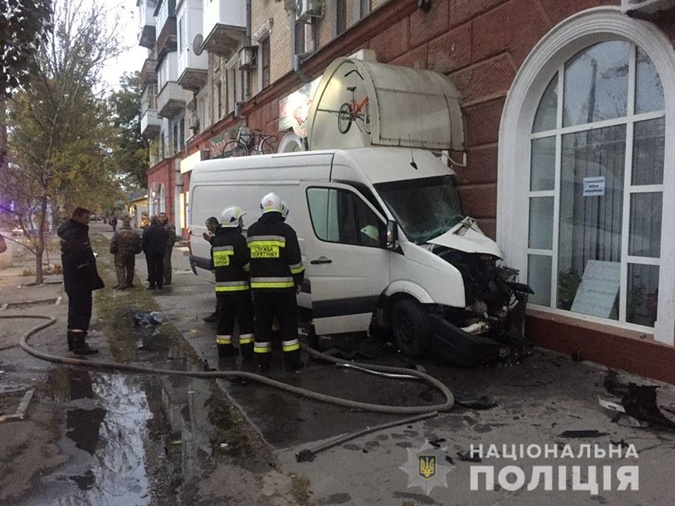 В Херсоне микроавтобус протаранил магазин и загорелся