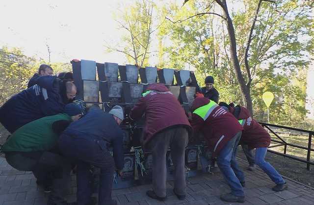Сегодня, 7 ноября, коммунальные службы Киева проводят демонтаж временного мемориала Героям Небесной Сотни, расположенный в центре Киева на аллее Героев Небесной Сотни. Демонтаж проводится для того, чтобы у следователей ГПУ и экспертов была возможность провести следственный эксперимент в рамках расследования дела о расстреле активистов Евромайдана в феврале 2014 года. Власти отмечают, что после проведения следственного эксперимента на месте временного мемориала начнется строительство постоянного мемориала Героям Небесной Сотни.