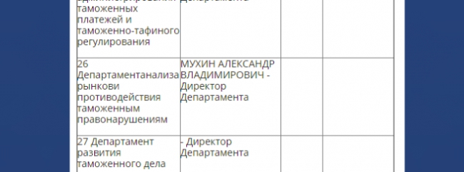 Соответственно, несложно найти и его "зама" Мухина. Сайт ГФС безошибочно указывает на директора департамента анализа рынков и противодействия таможенным правонарушениям Александра Мухина.