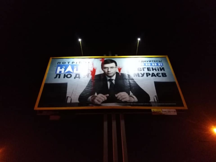 В Житомире зафиксированы случаи порчи рекламных бигбордов лидера партии «Наши» Евгения Мураева.