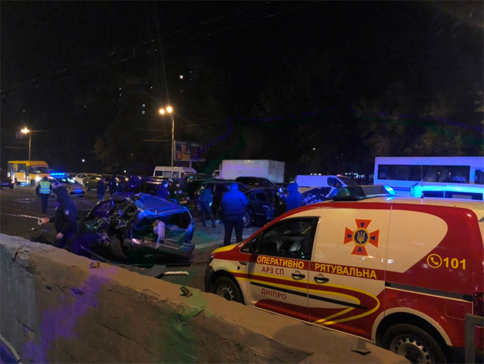 В Днепре вечером 19 ноября произошла крупная авария с участием десяти автомобилей. В инциденте пострадали трое мужчин — 1981, 1984 и 1976 годов рождения.