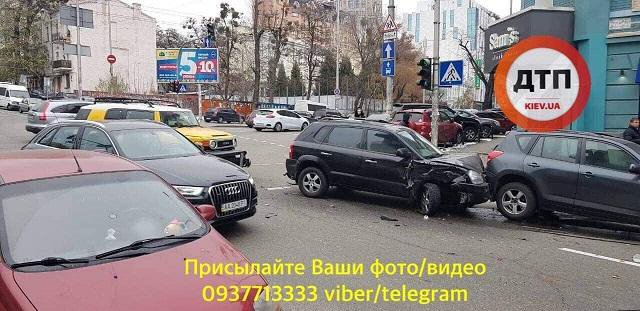 23 листопада в центрі Києва, на Володимирській вулиці зіткнулися п’ять автомобілів.