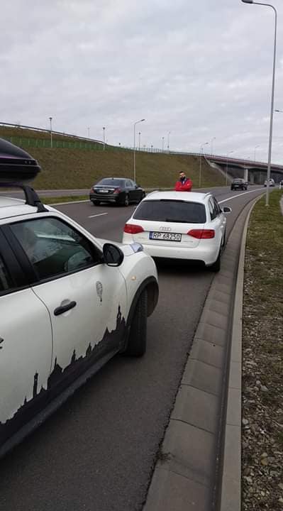 Житель Перемышля увидел на авто Кульчицкого наклейки с изображением трезубца на заднем бампере, трезубец был изображен не золотым на синем фоне, а красным на черном, и вызвал местную полицию.