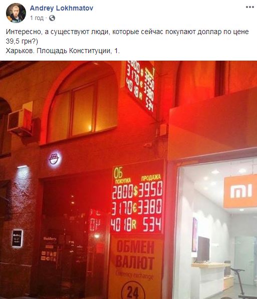 Тем временем в сети распространяют фото из Харькова, на котором видно, как в самом центре города предлагают купить доллар по курсу 39,5.