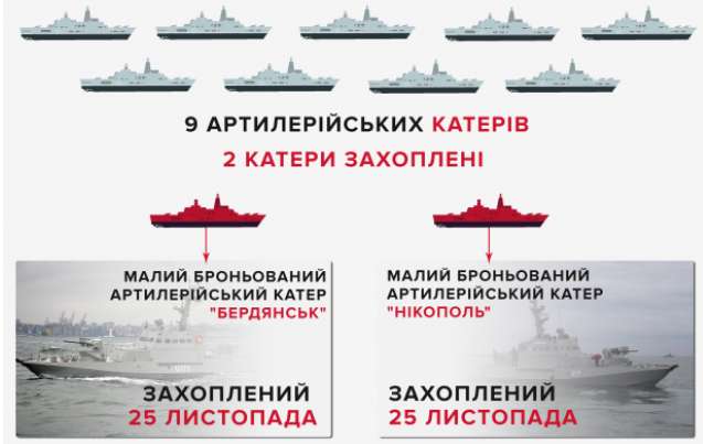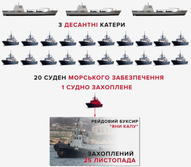 Вместо ответа российские корабли атаковали “Бердянск” и еще один такой катер “Никополь” и рейдовый буксир “Яны Капу”, которые направлялись из Одессы в порт Мариуполя. Россияне открыли огонь, захватили корабли и военных.