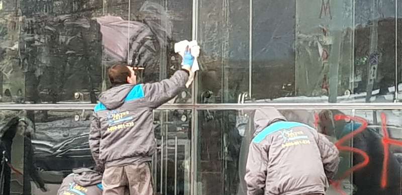 На данный момент сотрудники ТРЦ отмывают фасад от надписей "Бизнес на крови", "Не покупай у оккупантов" и прочих. Также они вывозят покрышки, которыми активисты загородили вход в здание торгово-развлекательного центра.