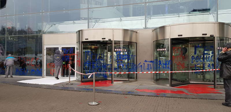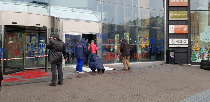 ТРЦ Ocean plaza в Киеве возобновил работу. Здание отмывают от надписей