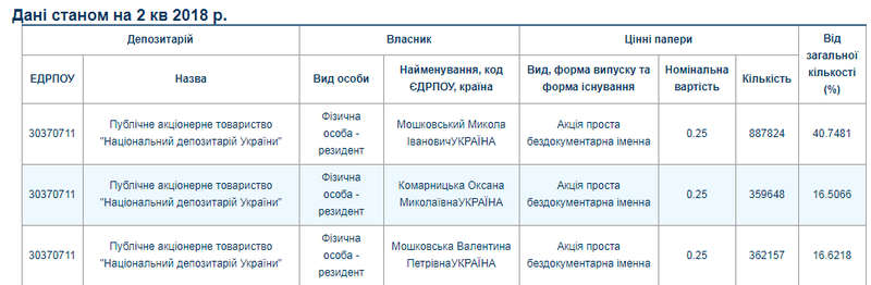Кстати, ЗАО «Хмельницкое СМУ - 69» контролируется семьей Мошковских. 40% акций принадлежат Николаю Мошковскому, 16,6% у жены Валентины и 16,5% сконцентрировано у дочери Оксаны Комарницкой (сестры Альбины Ковальчук):