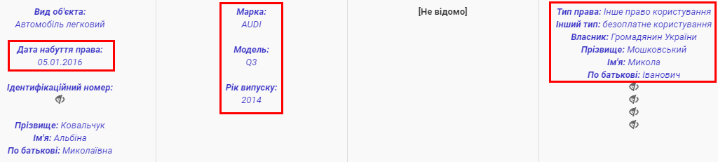 Согласно декларации за 2017 год, судья Ковальчук передвигается на отцовском автомобиле Audi Q3 с 2015 года. Стоимость авто тянет на официальную пятилетнюю прибыль Николая Мошковского. Также на мать Мошковскую Валентину с 2017 года зарегистрировано транспортное средство Nissan Qashqai, стоимость которого стартует от 300 000 грн.