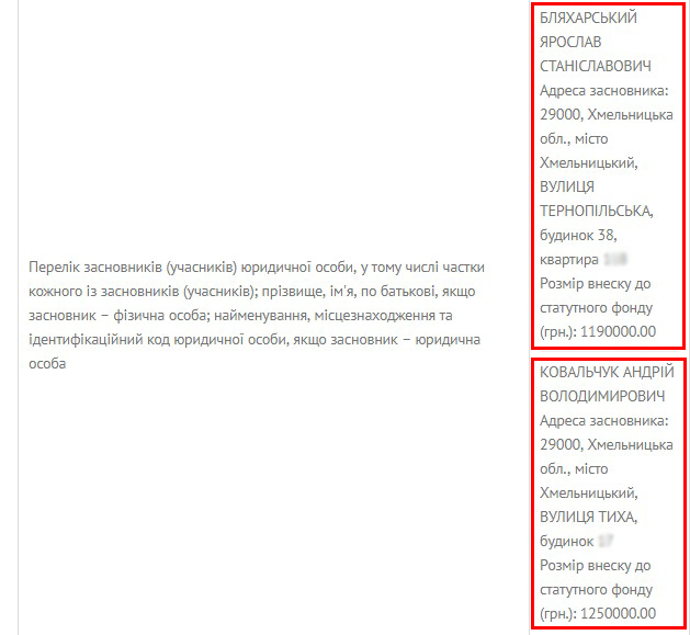 Вместе с тем, мы нашли все компании, где Андрей Ковальчук является учредителем, и сопоставили его взносы в уставные фонды. Оказалось, что в свой бизнес он вложил 4 905 940 грн. При этом, 2 456 000 грн он вложил в компанию ТОВ "ЄВРОЗАЛІЗОБЕТОН" в 2016 году. Где он взял эту сумму - загадка. Вероятно, иного решения, кроме «засекретить» доходы мужа, Альбина Ковальчук найти не могла. Ведь, очевидно, что к происхождению средств возникли бы вопросы.