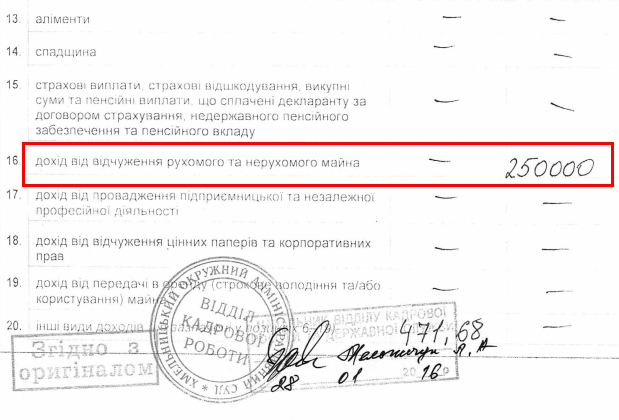 На подаренные же деньги, говорит судья, ее бывший муж построил бизнес. Мы посчитали, что в период с 2012 по 2015 годы Андрей Ковальчук получил совокупный доход от продажи имущества и подарков в 1 596 069 грн. Каков же было доход от бизнеса - неизвестно, потому что в декларации за 2016 год судья не указывает доходы своего мужа.