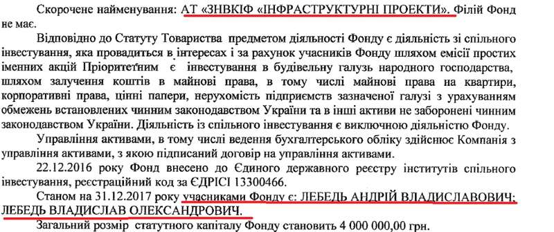 Как уже писал «ОЛИГАРХ», им является киевский бизнесмен Владислав Лебедь, которой стоит во главе наблюдательного совета Каховского завода электросварочного оборудования (вместе с сыном Андреем он владеет фондом «Инфраструктурные проекты», сконцентрировавшим 63,7% акций КЗЭСО). Упомянутый Андрей Лебедь во времена Януковича был известен как автогонщик из команды «Ferrari Team Ukraine», созданной ныне покойным сыном беглого президента Виктором Януковичем-младшим и его донецким другом Русланом Цыплаковым по прозвищу «Цыпа», находящимся сейчас в розыске.