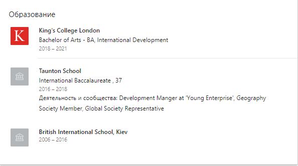Как оказалось, Никита Гонтарев пополнил ряды иностранных студентов Королевского колледжа Лондона (King’s College London). Сейчас это второй по величине лондонский колледж, который занимает пять кампусов, расположенных в самом центре города. Дипломы вуза котируются во всем мире.