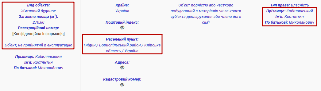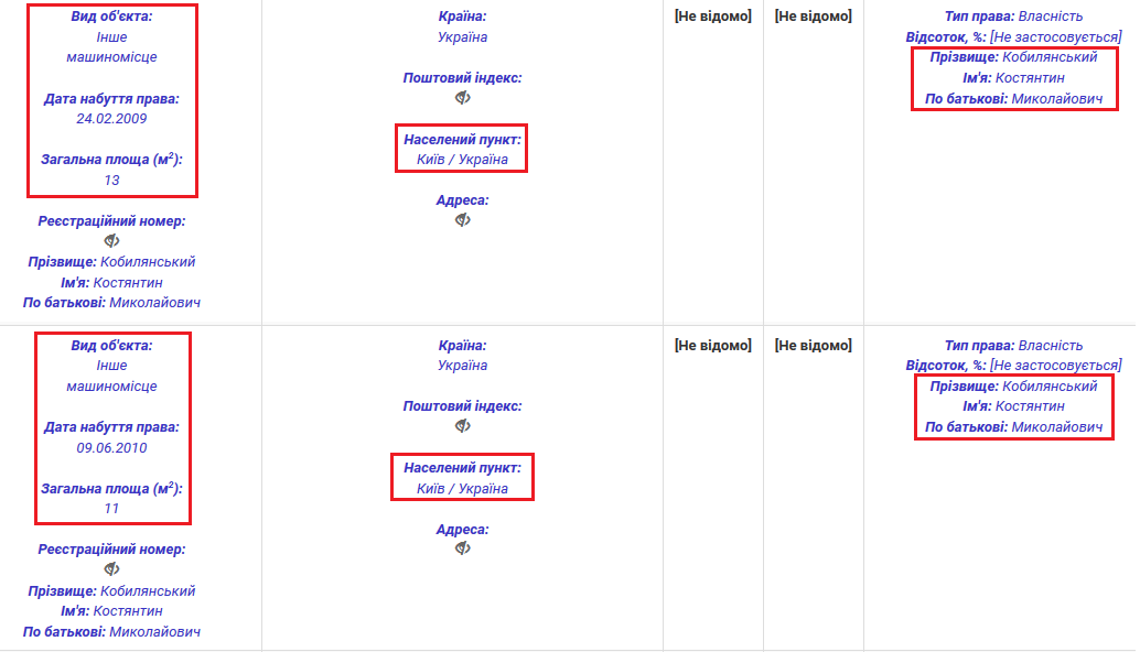 Цікаво, що цю квартиру у декларації за 2014 рік подружжя вказало, ніби вони є її рівноправними власниками, а тому вказали площу по 53 кв. м. Ще більше виникає запитань з приводу того, де проживав Костянтин Миколайович Кобилянський до цього. Адже в його деклараціях за 2012 та 2013 роки є лише 2 земельні ділянки та 2 гаражі (гаражі в декларації за 2012 рік взагалі відсутні), де він навряд чи міг би мешкати.