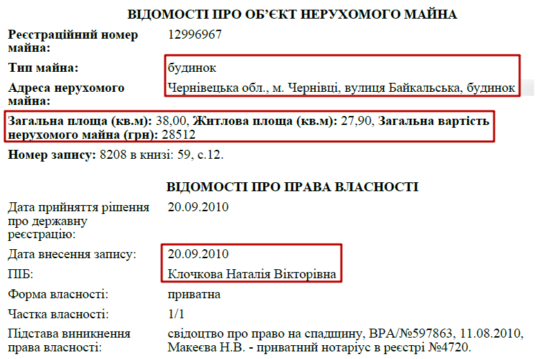 Дружина судді також є власницею земельної ділянки та невеличкого будинку у Чернівцях.