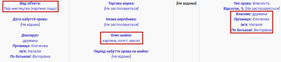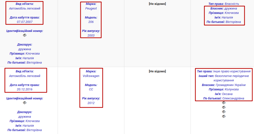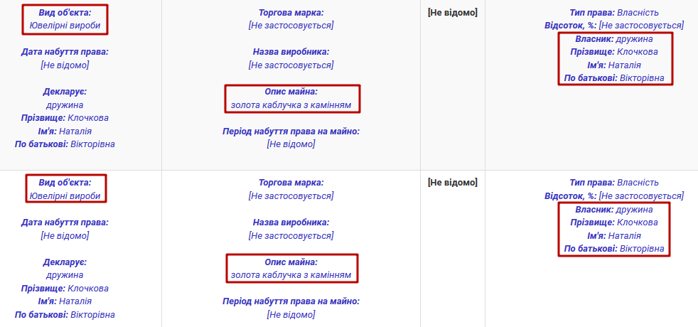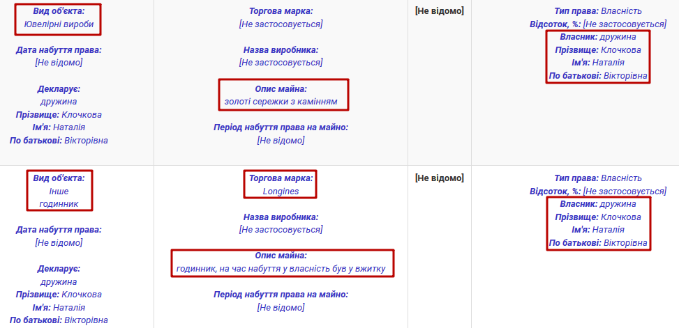 • Клочкова Наталія Вікторівна (дружина) – суддя Окружного адміністративного суду м. Києва.