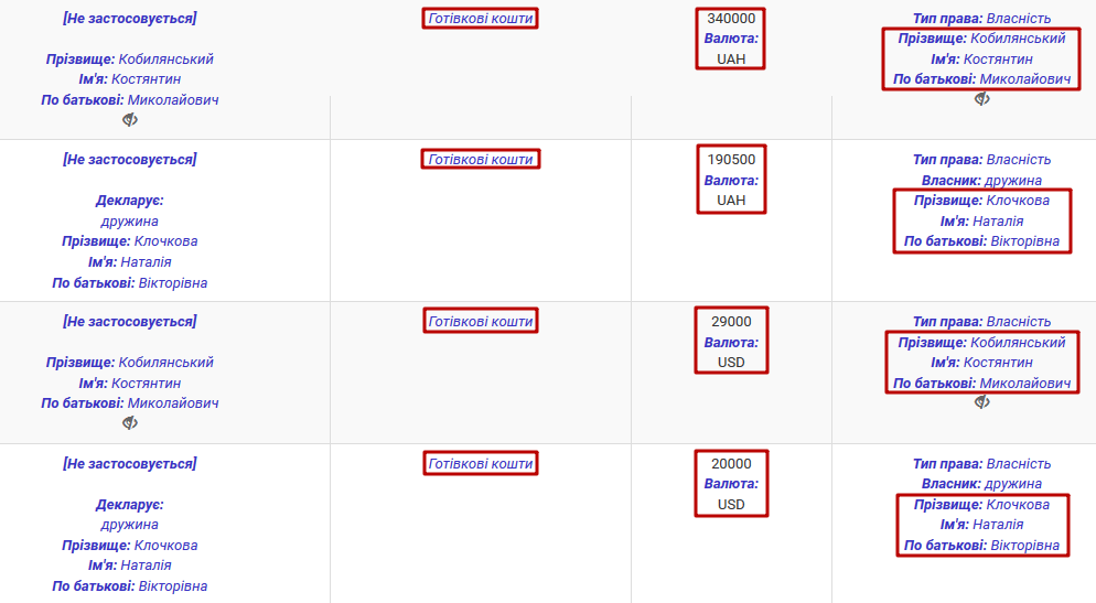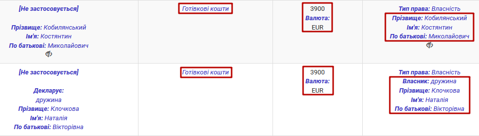 Великими є і заощадження родини. Подружжя має у власності 530 тис. грн, 49 тис. доларів та 7800 євро.