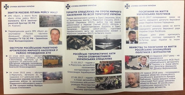 «Буклеты, которые изданы на украинском и английском языках, содержат специальные QR-коды, которые дают возможность прямого доступа к компилируемой информации о соответствующих фактах российской преступной деятельности как разоблаченной СБУ, так и собранных общественными активистами», — рассказали в ведомстве.