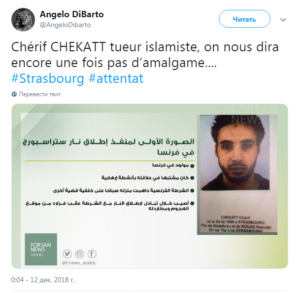 Также известно, что имя подозреваемого – Шериф Шека. Сообщается, что именно его зафиксировали камеры наблюдения. Это 29-летний мужчина, который родился в Страсбурге.