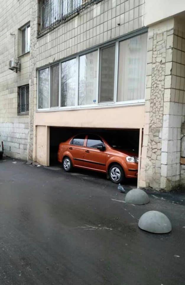 В сети показали очередного “героя парковки”, который умудрился припарковать свой автомобиль под балконом жилого дома.