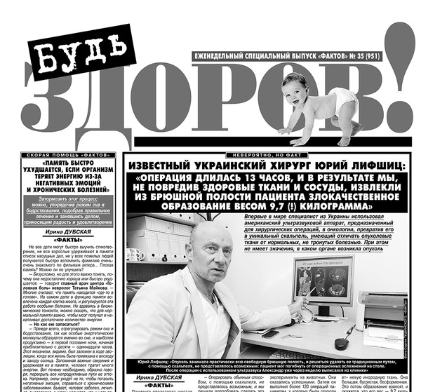 * Впервые об ультразвуковой хирургии «ФАКТЫ» написали 2 сентября 2016 года