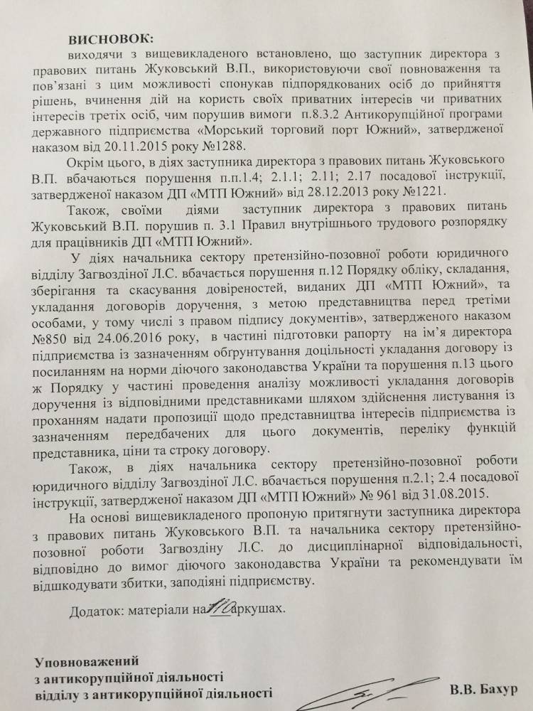 Прокуратура Одесской области расследует признаки злоупотребления служебным положением со стороны руководства ГП «Морской торговый порт Южный». Речь идет о периоде, когда Жуковский являлся замдиректора по юридическим вопросам.