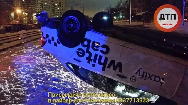 На улице Закревского, 89, в Деснянском районе Киева перевернулся на крышу автомобиль Volkswagen Polo.