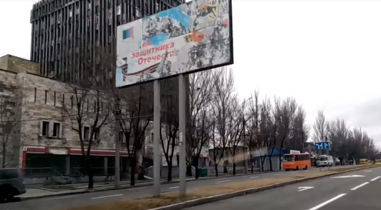 Из нового – на фоне разрухи и даже после ликвидации «главы ДНР» Александра Захарченко висят билборды с его цитатами о том, что «родина у нас одна – Россия».