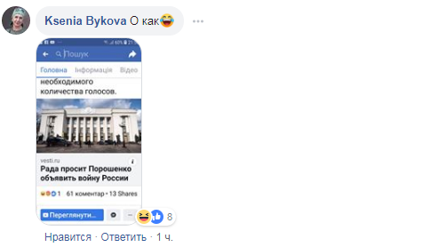 Сам же офицер отреагировал на заявление словами: “Сегодня боярышник был немного крепче партии постоянных поставок рупорам кремлевской пропаганды”. Также и другие пользователи с юмором и недоумением отнеслись к информации росСМИ, написав об этом в комментариях под постом Штефана.