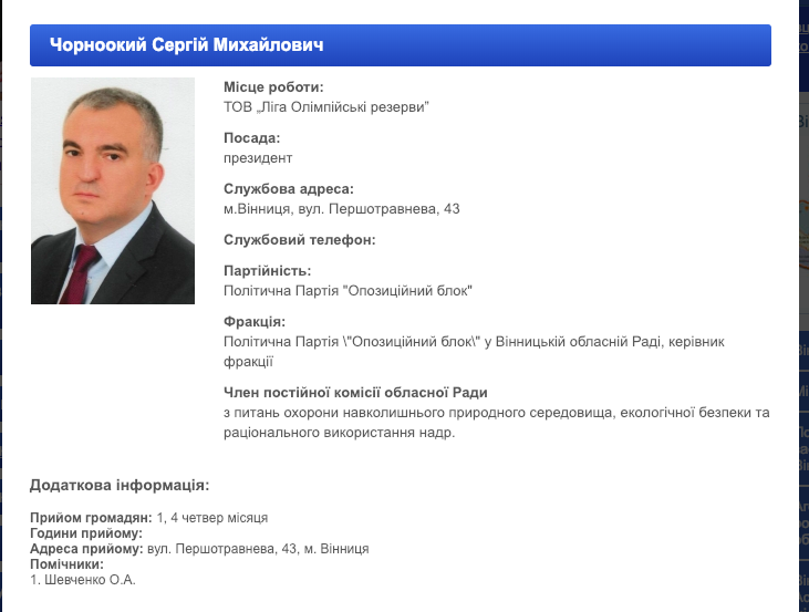 По информации местного издания Vежа, задержанным депутатом, скорее всего, является председатель фракции “Оппозиционного блока” Сергей Черноокий. Об этом журналистам сообщили сразу несколько собственных источников. По информации начальника ГУНП в Винницкой области Юрия Педосы, задержанные требовали у пострадавшего 4 тыс. долларов. Злоумышленников задержали с привлечением бойцов спецподразделения КОРД при передаче очередной суммы – 13 тыс гривен.