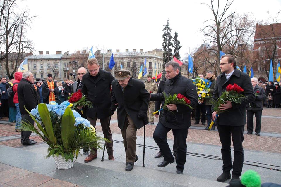 Мэр Львова Андрей Садовой отметил, что Бандера родился в Галичине и был великим патриотом. Также в своем выступлении он упомянул Томос.