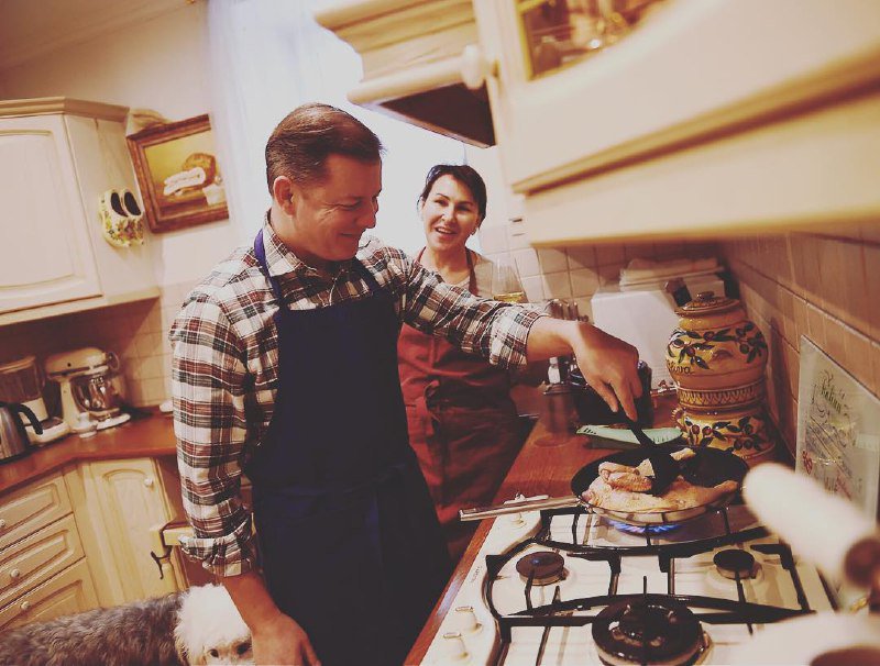 Лидер «Радикальной партии» Олег Ляшко на рождественские праздники готовил новогодний ужин со своей женой Роситой. Фотографиями поделился в Instagram. Во время приготовления подкармливает своих собак. В первый день 2019-го поделился фотографией, где переоделся в Санта-Клауса.