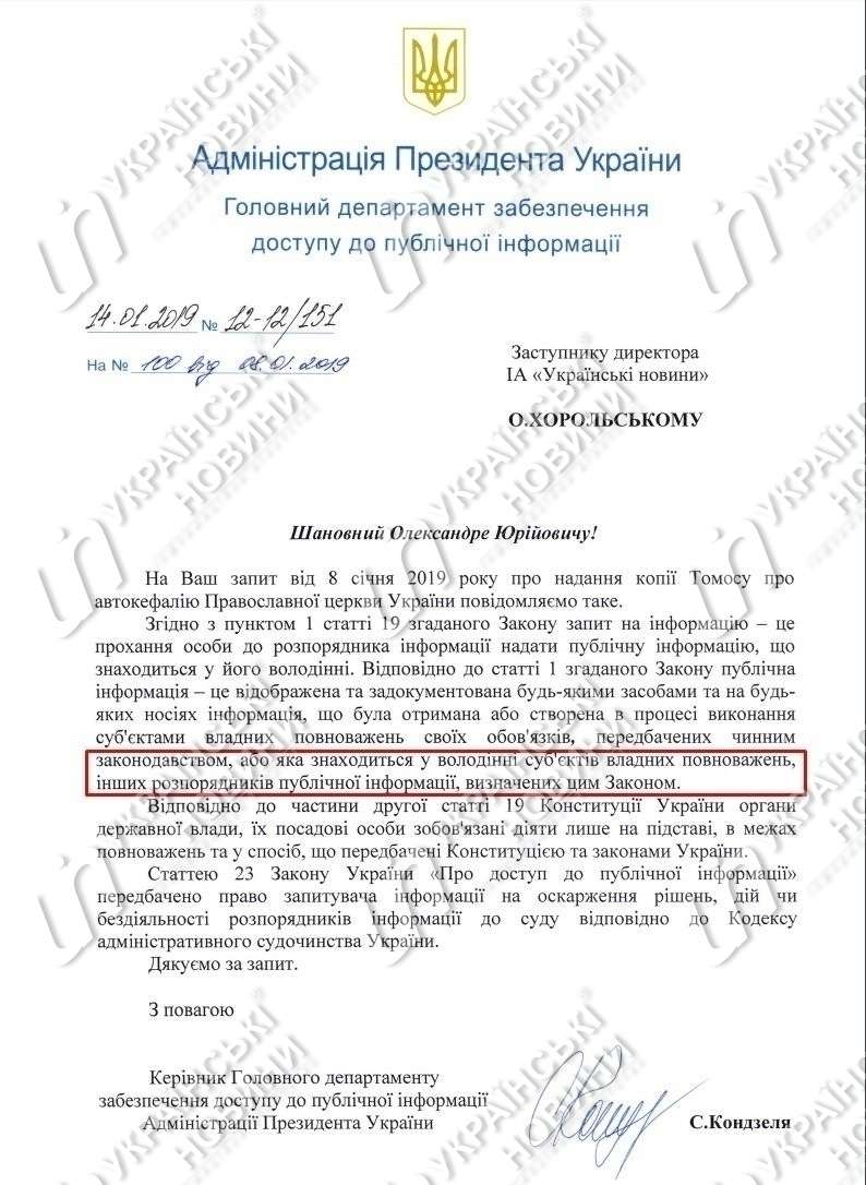 Как выяснилось, ни в Администрации Президента Украины, ни в аппарате Верховной Рады Украины, ни в МИД нет текста Томоса об автокефалии Православной церкви Украины (ПЦУ).