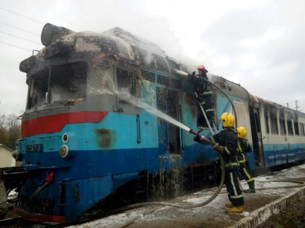 Пожар в дизель-поезде, фото ГСЧС
